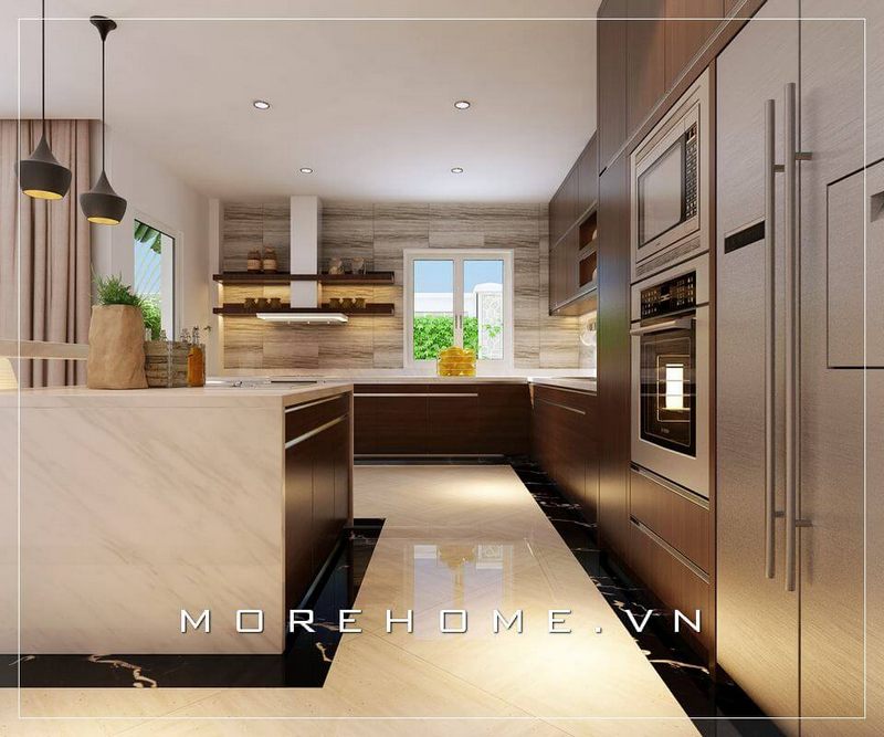 Tủ bếp chữ U phong cách đương đại đẹp cho biệt thự, nhà phố, chung cư cao cấp.