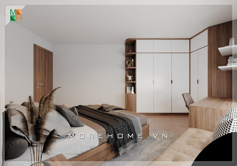 Mẫu thiết kế phòng ngủ phong cách hiện đại cho chung cư, nhà phố, biệt thự với nội thất gỗ óc chó cao cấp kiểu dáng tối giản