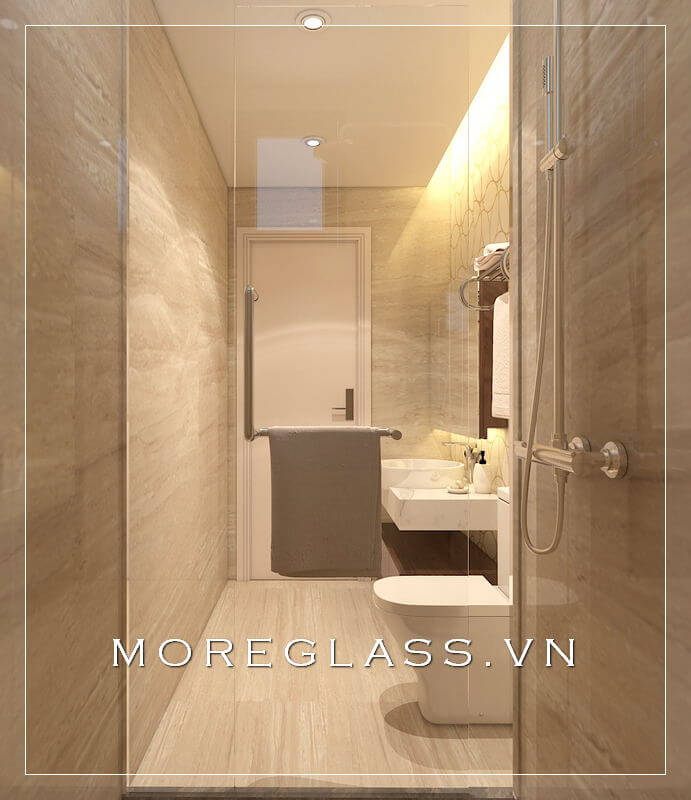 được thiết kế đẹp và sang trọng, có vách tắm kính để tạo sự thoải mái cho người sử dụng.